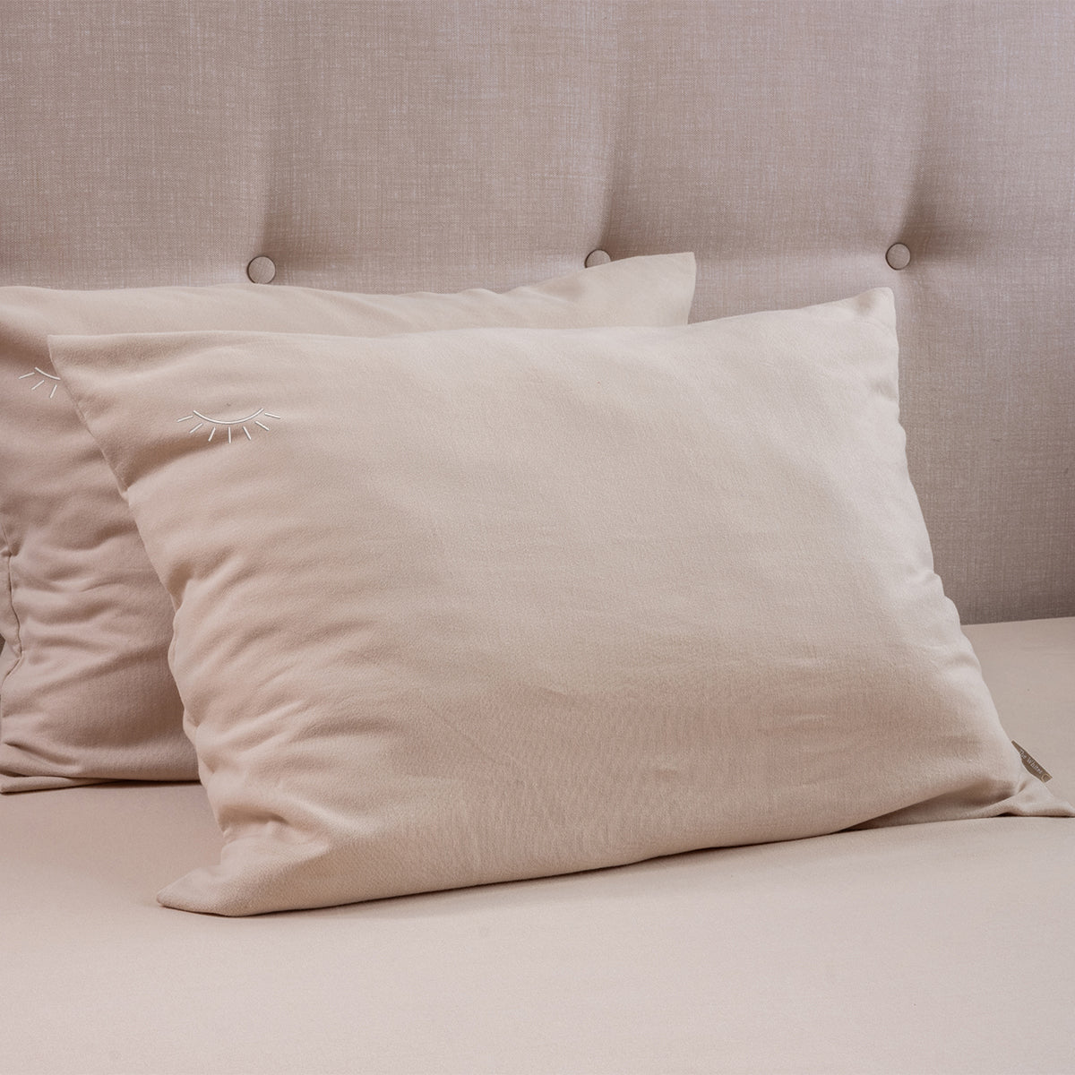 Добавете още един слой нежност към спалнята с нашия комплект калъфки от деликатен памучен бархет — материя, която топли, диша и обгръща с естествена мекота. Повърхността е леко мъхеста и пухкава, създавайки усещане за уют още от първото докосване, а елегантната бродерия добавя онзи фин, ръчно изработен акцент, който превръща всяка калъфка в малко бижу за дома.
